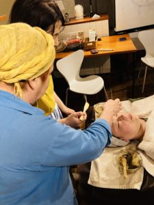 顔には表情筋や経絡が多く集まっています。パック前に顔の半分だけ筋肉をほぐし、もう半分はそのままパックするという実験を行いました。